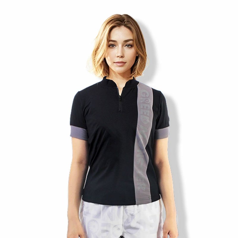 スポーティな印象がアップするバイカラーデザインのハーフジップモックネックTシャツ。