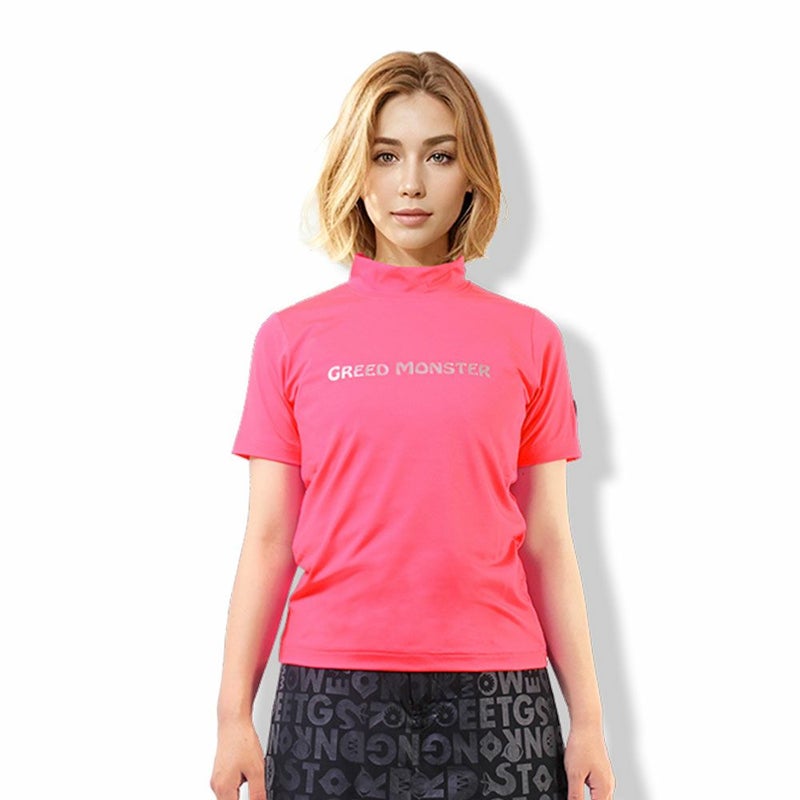グリーンに映えるネオンカラーで夏らしいアクティブさを演出してくれる半袖モックネックTシャツ。